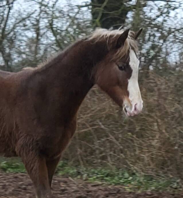 Un magnifique et grand poulain avec Une belle liste en tête. 2 grandes chaussettes éclabousse en postérieurs. 2 chaussettes entrecoupé en antérieures.